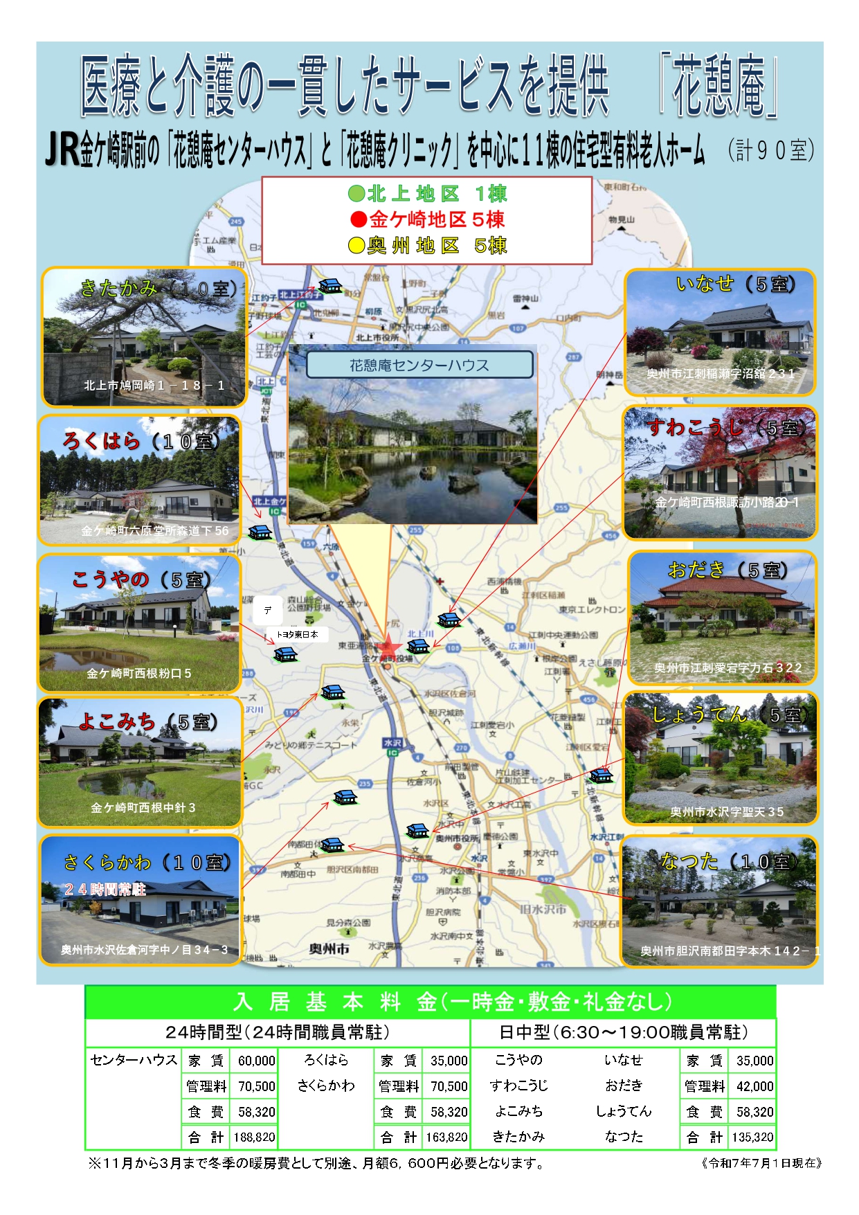 花憩庵には、花憩庵クリニック(診療所)の他、居宅介護支援(ケアマネジャー)・訪問介護(ヘルパー)・訪問看護(看護師)・デイケアセンター(通所リハビリ)事業所があり、必要に応じて各事業所をご利用頂くことで、包括的なサービスの提供を受ける事ができます。