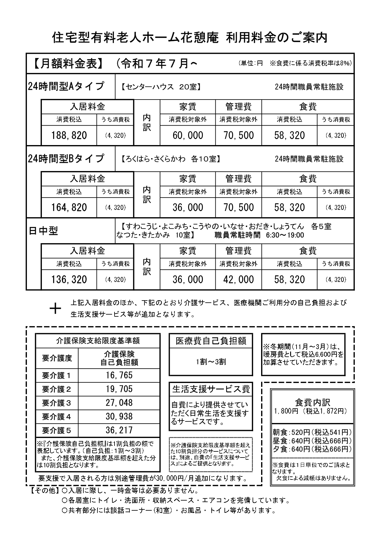 花憩庵への入居は原則、要介護1以上の方が対象となりますが、要支援の方もご相談下さい。