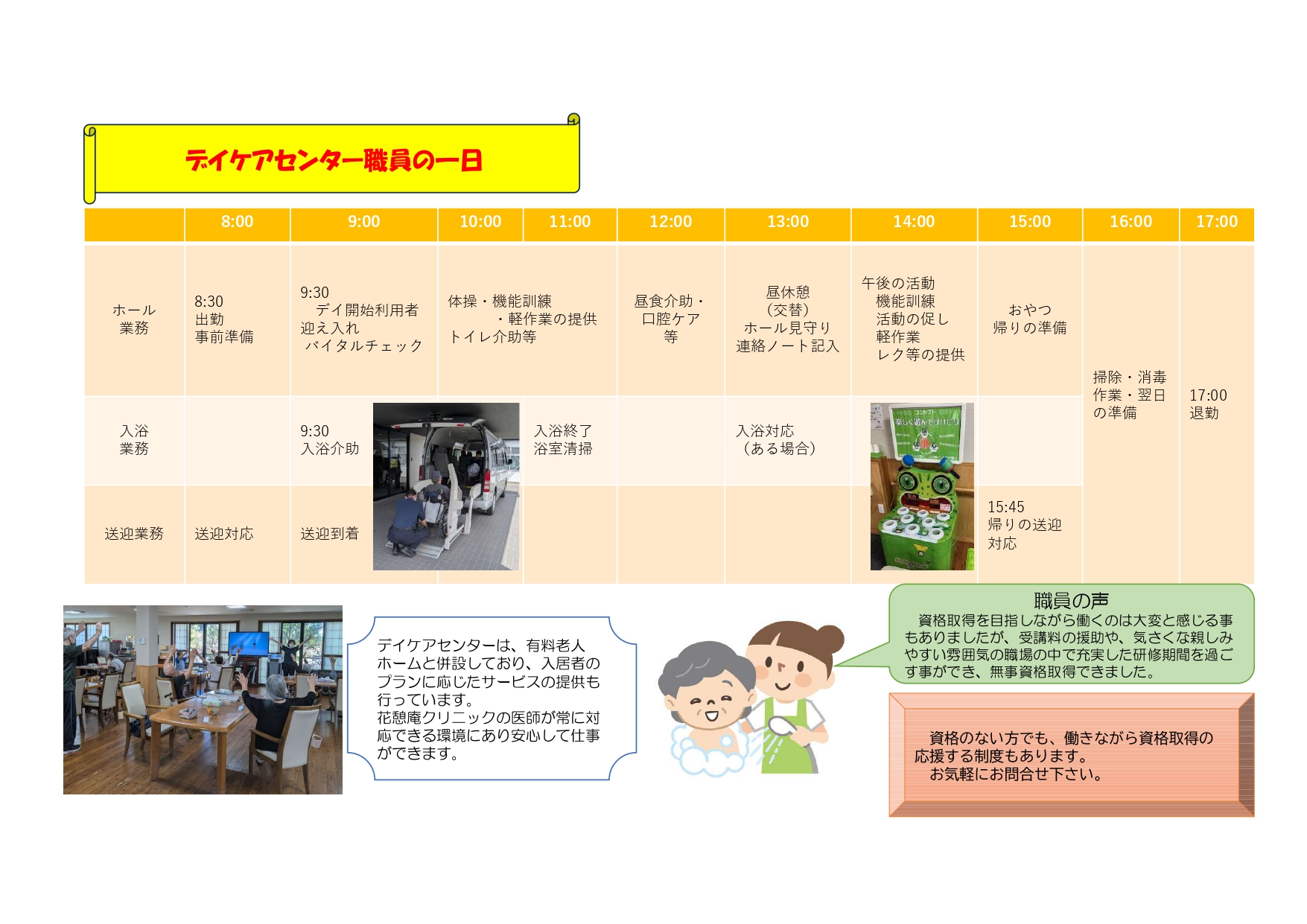 | 募集職種 | 介護福祉士 介護職員(介護職員初任者研修終了者、ヘルパー2級、未経験者可) |